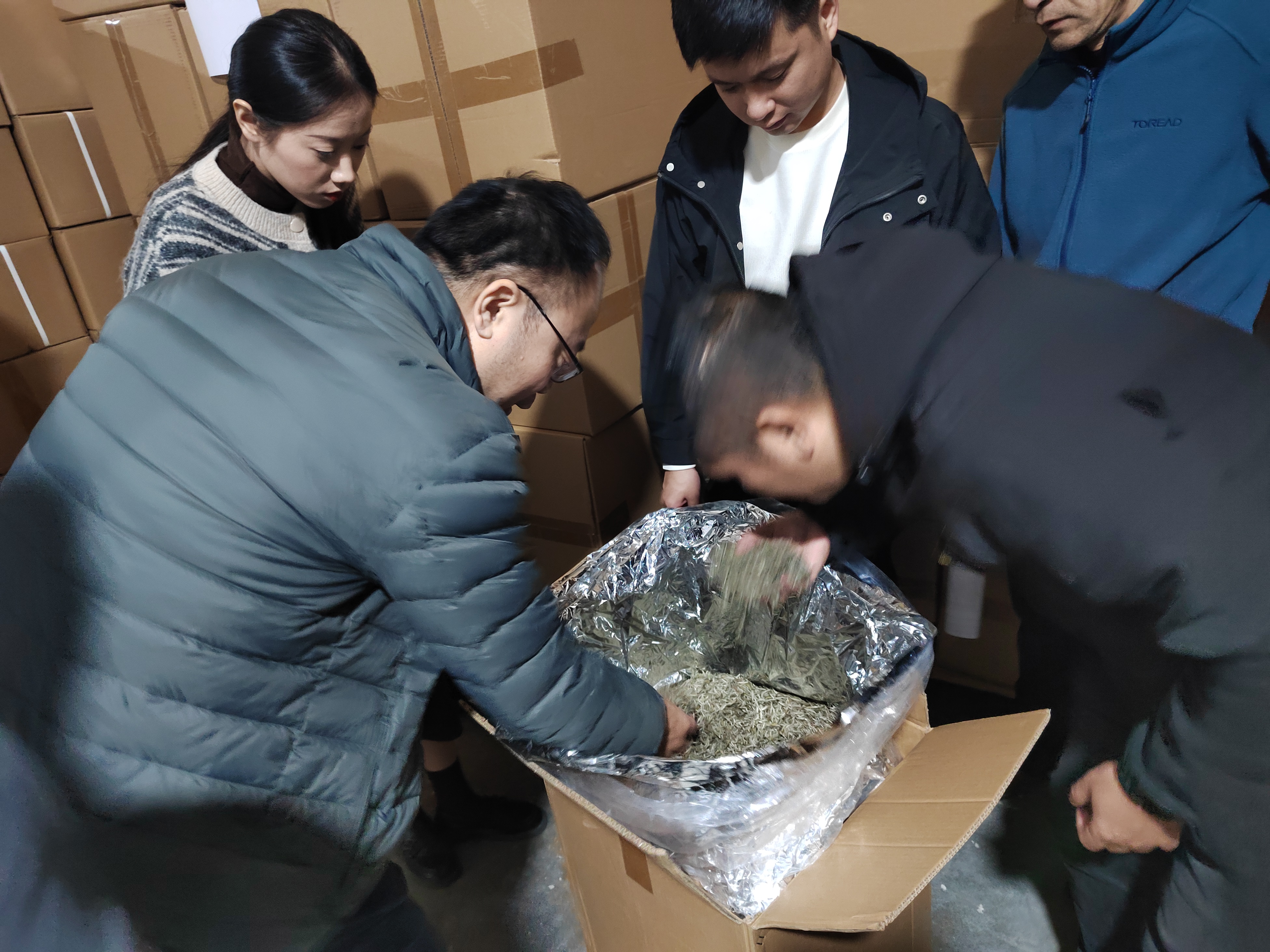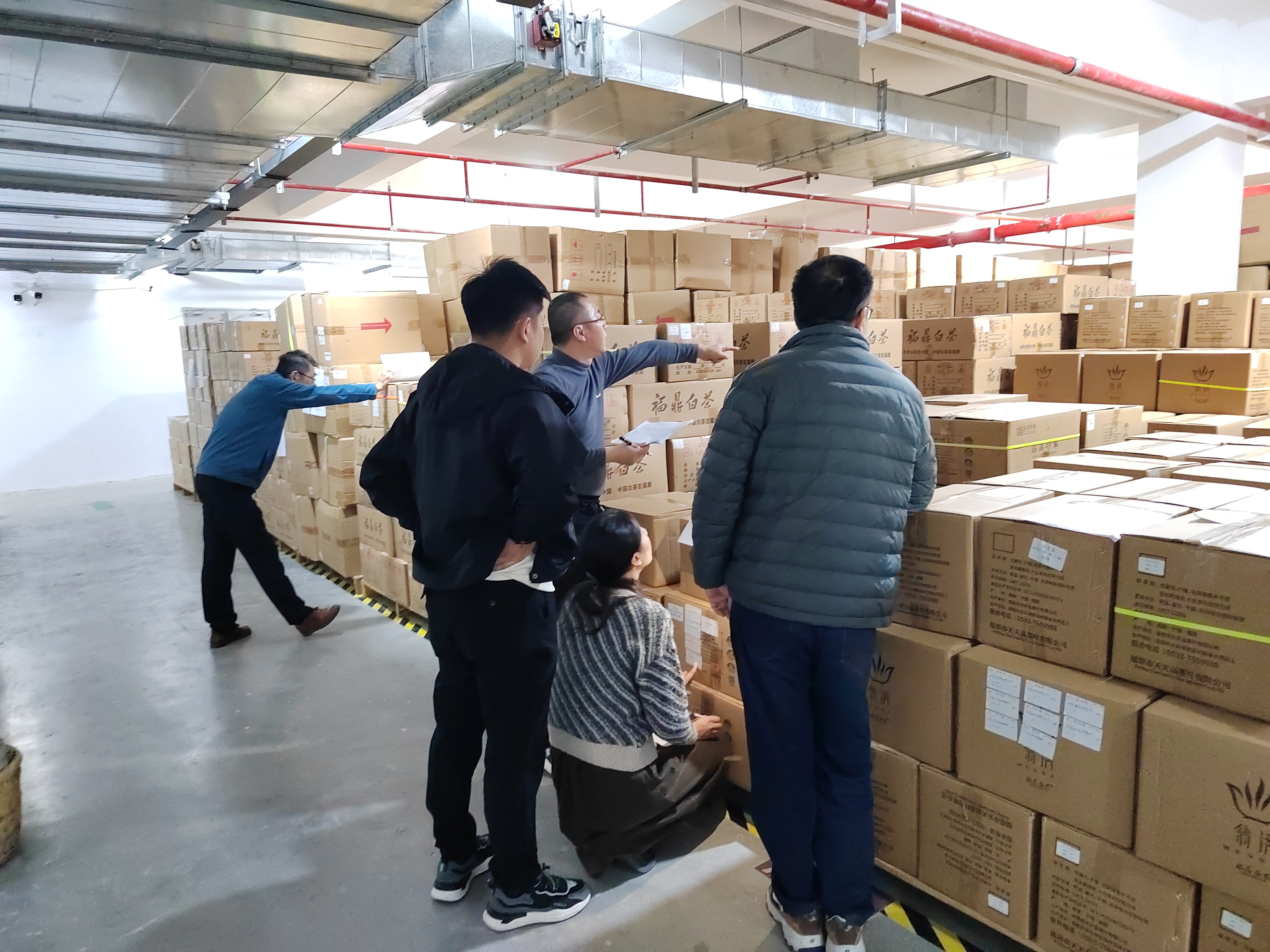 在活动现场,党员干部率先垂范,带头进行白茶库存的全面年终核查。他们对白茶的品种、数量及存储情况进行了详尽检查与记录,重点核对了全年入库、出库及库存变化情况,确保账实一致。同时,开箱查验白茶存储的情况,并针对年末库存管理中存在的薄弱环节和潜在风险,大家积极沟通交流,提出了针对性的改进措施。