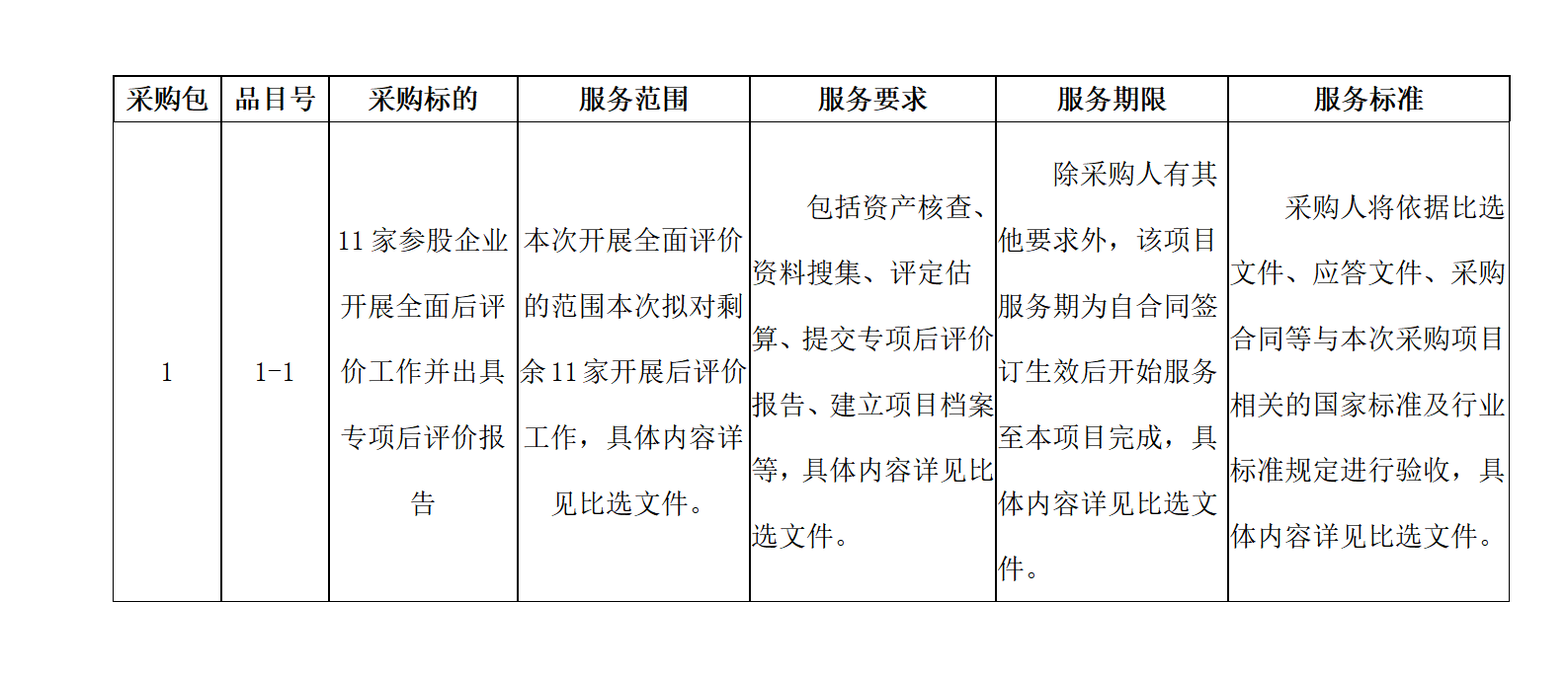 关于参股投资项目后评价服务采购项目比选采购成交公告